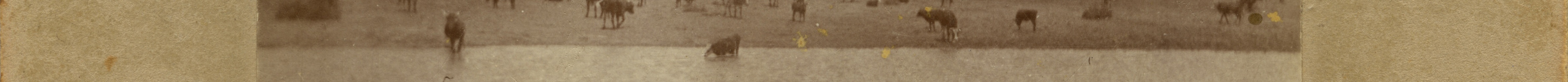 Back Inscription: Herd of cattle on the ranch around the lake
