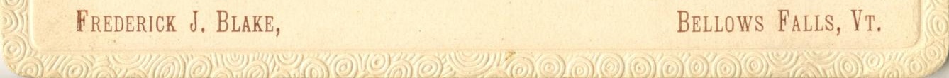 Front Inscription: auto detected: FREDERICK J. BLAKE, ... BELLOWS FALLS, VT. ... 00