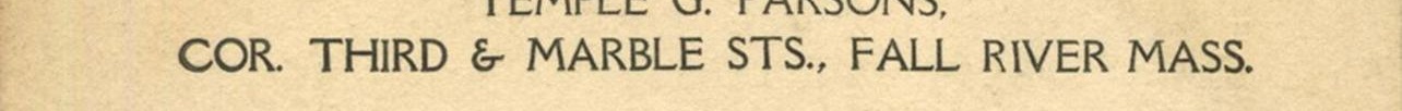 Back Inscription: auto detected: POST CARD ... AAZOA ... A PLACE A ... N N STAMP ... COR. THIRD & MARBLE STS., FALL RIVER MASS. ... o HERE o ... AAZOA ... TEMPLE G. PARSONS, ... CORRESPONDENCE HERE ... NAME AND ADDRESS HERE