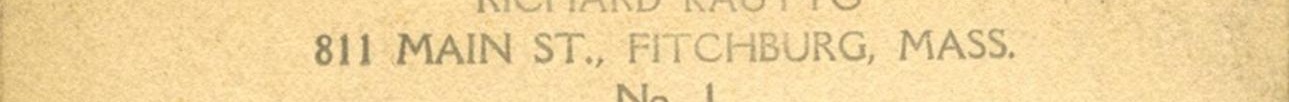 Back Inscription: auto detected: POST CARD ... AAZOA ... A PLACE A ... N STAMP = ... © HERE 0 ... RICHARD KAUTTO ... 811 MAIN ST., FITCHBURG, MASS. ... 4 A = o 4 ... CORRESPONDENCE HERE ... NAME AND ADDRESS HERE ... No. 1