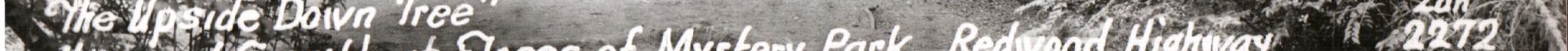 Front Inscription: auto detected: UPSTE DOWN TREE ... ONLY ... The ... UPSIDEDOWN ... TREE ... the U side Doivn Tree" ... Unusual Growth at Trees of Mystery Park - Redwood Highway
