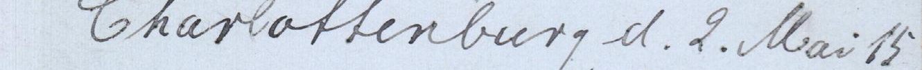 Front Inscription: auto detected: Chariottenburg d.2. Mail5 ... Mein liebes tranbin, ... Sir divrfen nicht base sein ... dap ich so lange and einen ... Brief warten lasse. Sch have ... Thre licben heilen ru New ... jahr exhalten M. die hulsche ... Harle vom A. April. Johnver-
